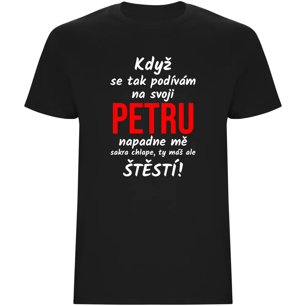 Pánské tričko s vtipným nápisem „Když se tak podívám na svoji (JMÉNO), napadne mě, sakra chlape, ty máš ale štěstí“ je skvělým originálním dárkem. Díky možnosti vložit jméno je tričko ještě osobnější a zaručeně pobaví. Vyrobeno z kvalitního materiálu s odolným potiskem, který vydrží. Perfektní jako dárek pro přítele, manžela nebo kamaráda.