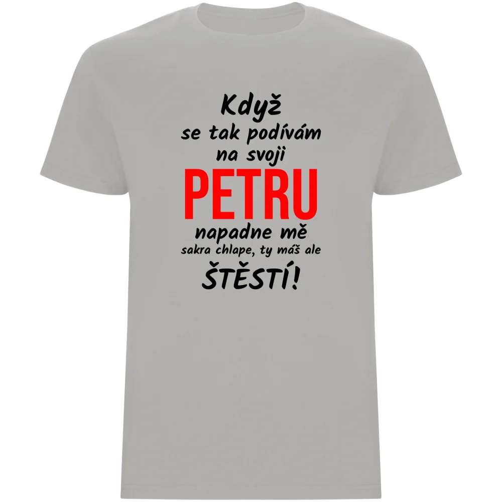 Nezapomeňte vlastní text uložit stisknutím tlačítka ULOŽIT VLASTNÍ TEXTPánské tričko s vtipným nápisem „Když se tak podívám na svoji (JMÉNO), napadne mě, sakra chlape, ty máš ale štěstí“ je skvělým originálním dárkem. Díky možnosti vložit jméno je tričko ještě osobnější a zaručeně pobaví. Vyrobeno z kvalitního materiálu s odolným potiskem, který vydrží. Perfektní jako dárek pro přítele, manžela nebo kamaráda.