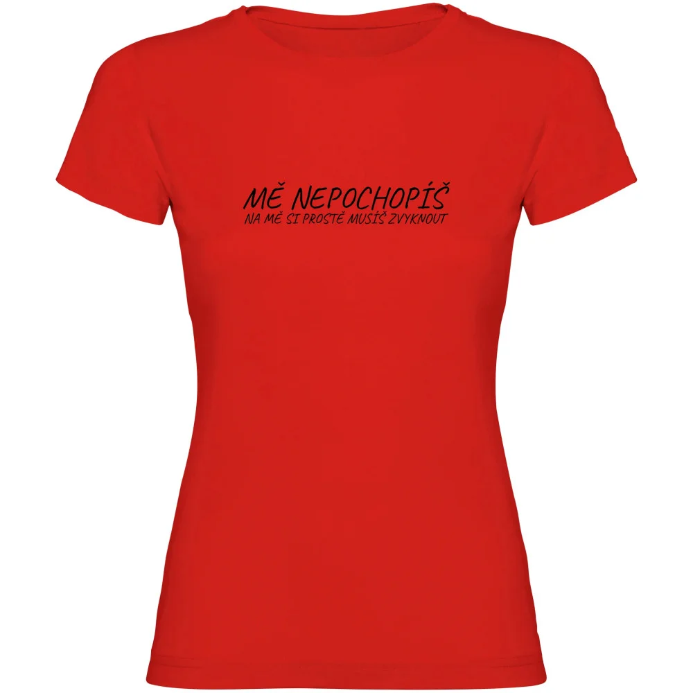 Dámské tričko s potiskem „Mě nepochopíš (na mě si musíš zvyknout)“ je ideální pro ženy, které milují originalitu a nebojí se být sami sebou.