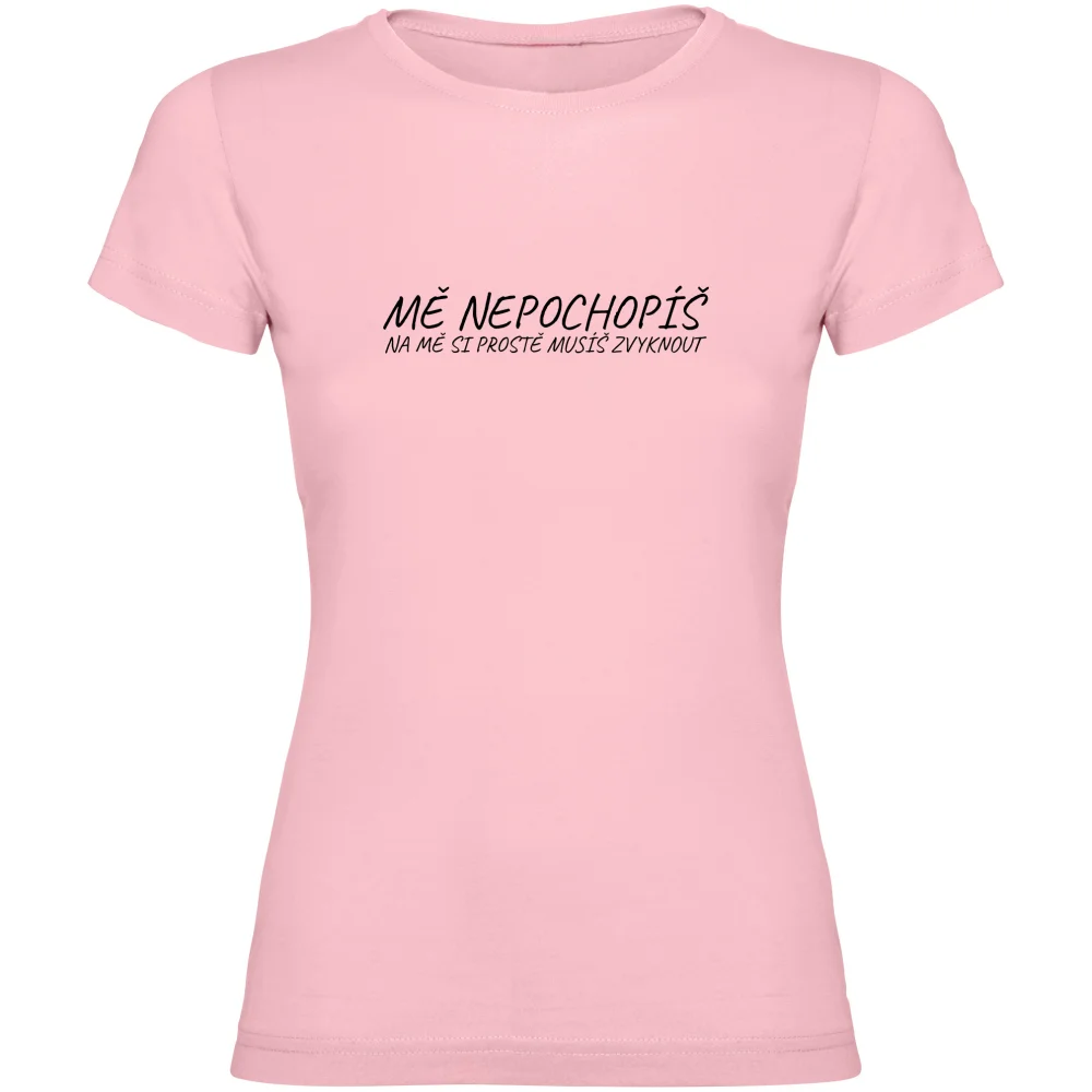Dámské tričko s potiskem „Mě nepochopíš (na mě si musíš zvyknout)“ je ideální pro ženy, které milují originalitu a nebojí se být sami sebou.