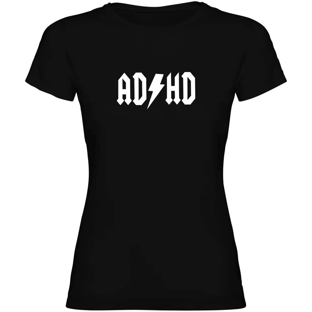 Dámské tričko s potiskem „ADHD“ v parodii na legendární kapelu AC/DC je ideální pro ženy, které chtějí kombinovat svůj hudební styl s humorem a originalitou.