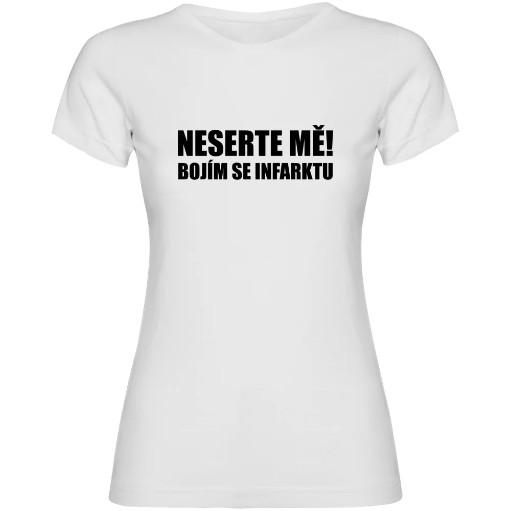 Dámské tričko s potiskem „Neserte mě, bojím se infarktu“ je ideální volbou pro ženy, které se nebojí říct, co si myslí. Výstižný nápis, který rozesměje každého – a zároveň dává jasné varování!