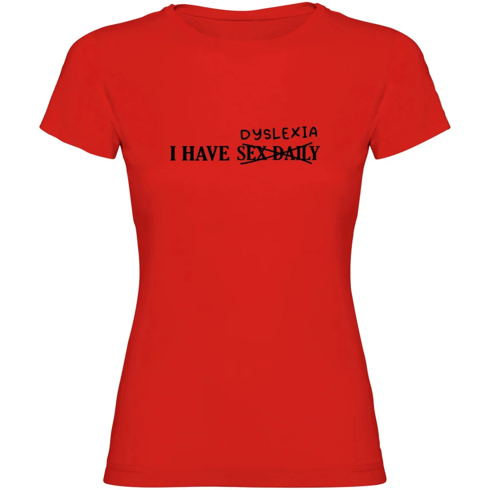 Vtipné dámské tričko s nápisem I HAVE SEX DAILY (přeškrtnuto a nahrazeno „DYSLEXIA“) zaručeně pobaví okolí a přitáhne pozornost. Kvalitní potisk z polyuretanové fólie odolá praní, takže tričko si dlouho zachová svůj skvělý vzhled. Pohodlný střih a příjemný materiál dělají z tohoto kousku ideální volbu pro každodenní nošení i jako originální dárek pro ženy s humorem.